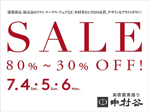 中村谷では7/4(土)から6(月)まで、セールを開催致します。