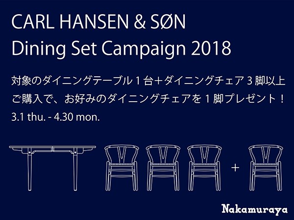 BLOGブログ BACK NAKAMURAYA ブログ CARL HANSEN & SØN Dining Set Campaign 2018 2018.03.09 update カールハンセン&サンダイニングセットキャンペーン開催中です。 対象のダイニングテーブル1台+ダイニングチェア3脚以上 ご購入で、お好みのダイニングチェアを1脚プレゼント! 大変お得なこの機会を是非ご利用ください。 3/1(木) ~ 4/30(月)まで。 CATEGORY DIARY ブランド 納入事例 商品情報 休業日 イベント SEARCH BACK NUMBER 2025年 2024年 2023年 2022年 2021年 2020年 2019年 2018年 2017年 2016年 2015年 2014年 2013年 2012年 LOG IN