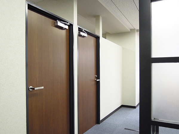 明るさは確保しながらエントランスと執務室の間にパーテーションを設けました。