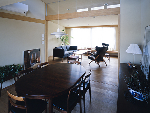 ダイニングからリビングを望みます。
