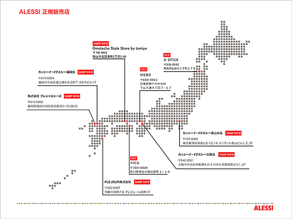 BLOGブログ BACK NAKAMURAYA ブログ ALEESI 正規販売店 2015.07.29 update ユニークな製品の数々で言わずと知れたイタリアの人気ハウスウェアブランド “ALESSI”。 中村谷ではこれまでも取扱いをしてきましたが、先日正規販売店として登録されました。 これまで以上にアイテムの展示展開をしていきます。 アレッシィ製品のお買い求めは是非 中村谷にて。 CATEGORY 納入事例 商品情報 休業日 イベント DIARY ブランド SEARCH BACK NUMBER 2025年 2024年 2023年 2022年 2021年 2020年 2019年 2018年 2017年 2016年 2015年 2014年 2013年 2012年 LOG IN