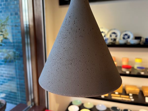 フォスカリーニの「アプロム」ペンダントライトが入荷いたしました。「冷静・沈黙」を意味する”aplomb”。シェードはコンクリートでできており、その厚さや構造をクリアするまでに年月をかけたフォスカリーニの精神やテクノロジーが詰まった渾身の作品です。すべて手づくりの為、コンクリート表面の気泡の広がり方には個体差があり、微妙な違いが楽しめる味わい深いアイテムとなっています。