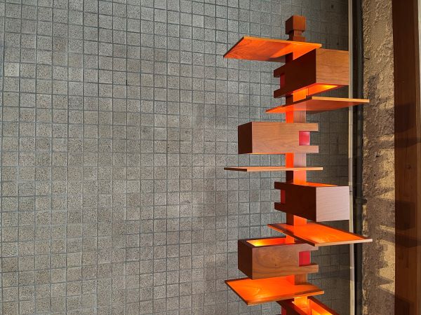 タリアセンは当時、置かれる空間に合わせ最適な大きさで作られ、さらに、それぞれの土地で地元の木材を使用していました。現在はチェリー、ウォルナット、チェスナット、オークの木材と3つのサイズバリエーションが揃います。展示のチェリーは桜の木を使用しており日本の家屋にとても合います。1台1台に正規品の証明としてシリアルナンバー入り真鍮プレートが付属しています。