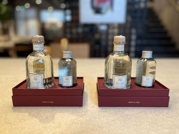 ドットール・ヴラニエスより、香りを贈り物にしたい方にぴったりなギフトボックスが登場しました。今回ギフトボックスとして登場しているのはジンジャー・ライムとアリアの香り。洗練されたこの香りの250mlサイズのディフューザーと詰め替え用のリフィル150mlが、ブランドカラーの特別なクリムゾンレッドのボックスにセットされています。ギフト用としてはもちろん、初めてドットール・ヴラニエスのディフューザーをお使いになる方も使いやすい組み合わせとなっています。