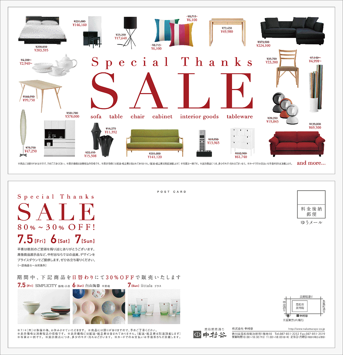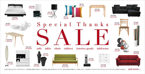 展示品・廃番商品など、中村谷ならではの品質・デザインをプライスダウン。