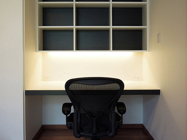 ベース部分の仕上げはセンターテーブルに合わせ、小板の仕上げは部屋の造付家具に合わせました。