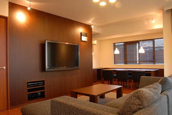 まずリビング、近年TVは薄型になりましたがAV機器を置くにはどうしても奥行きが必要です。