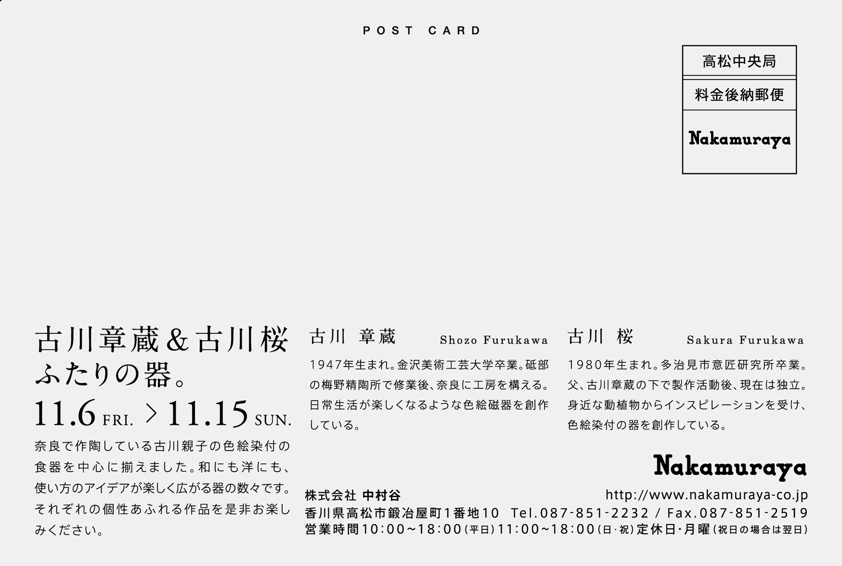 奈良で作陶している古川親子の色絵染付の食器を中心に揃えました。