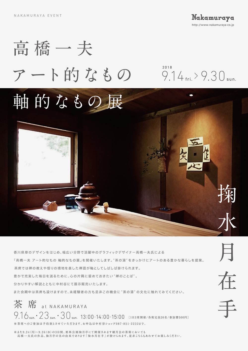 「高橋一夫 アート的なもの 軸的なもの展」を開催いたします。“茶の湯”をきっかけにアートのある豊かな暮らしを提案。