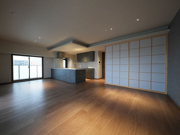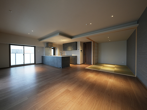 WORKS実例集 BACK NAKAMURAYA 実例集 建築・インテリア K邸 WORKS MENU Architecture & Interior建築・インテリア Works All Architecture & Interior All Residential Restaurant Clinic Office Shop Other Renovation Ordermade Furniture All Living Dining Kitchen Sanitary Bedroom Library Closet Entrance Other All Residential Restaurant Clinic Office Shop Other Renovation K邸 2023年 設計施工:株式会社 中村谷 マンションのリノベーション、床に段差がないのは今では普通ですが、天井は無駄に高低差があったり、ただ折りあげただけだったりを整理しスッキリと揃えます。造作と照明計画で奥行きを与え落ち着きのある立体的な空間に。床壁天井とキッチンや家具の仕上げバランスをしっかり検討します。使い勝手の悪い洋室は全開放できる和室に変更しました。こちらはセントラル総合開発株式会社のクレホームズ物件です。